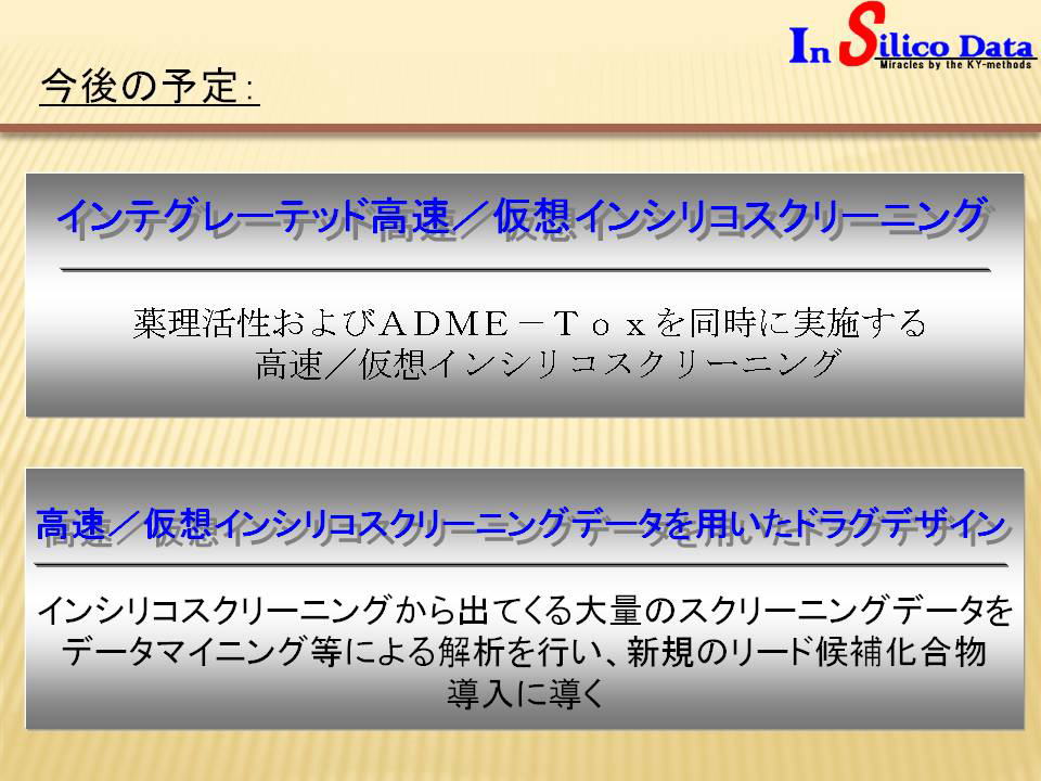 株式会社インシリコデータの湯田はデータサイエンスやAIを用いた創薬に関するアプローチを幾つも提案し、実施してまいりました。本スライドは、湯田が提唱する「マルチカテゴリースクリーニング(Multi-category Screening)」を実施した結果を示したものです。